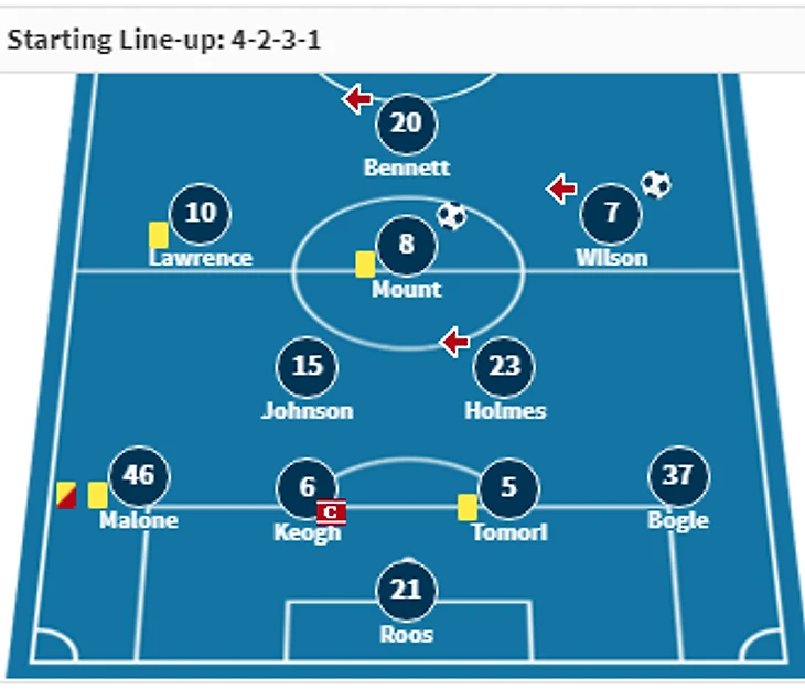 Как я выше уже перечислял, потери у Дерби имеются, нет двух левых защитников, основного центрального, потеря в середине поля и атаке. У них большие проблемы с созиданием, и Вилсон и Лоуренс не являются великолепными плеймейкерами. Вилсон это острие, 15 мячей за сезон.