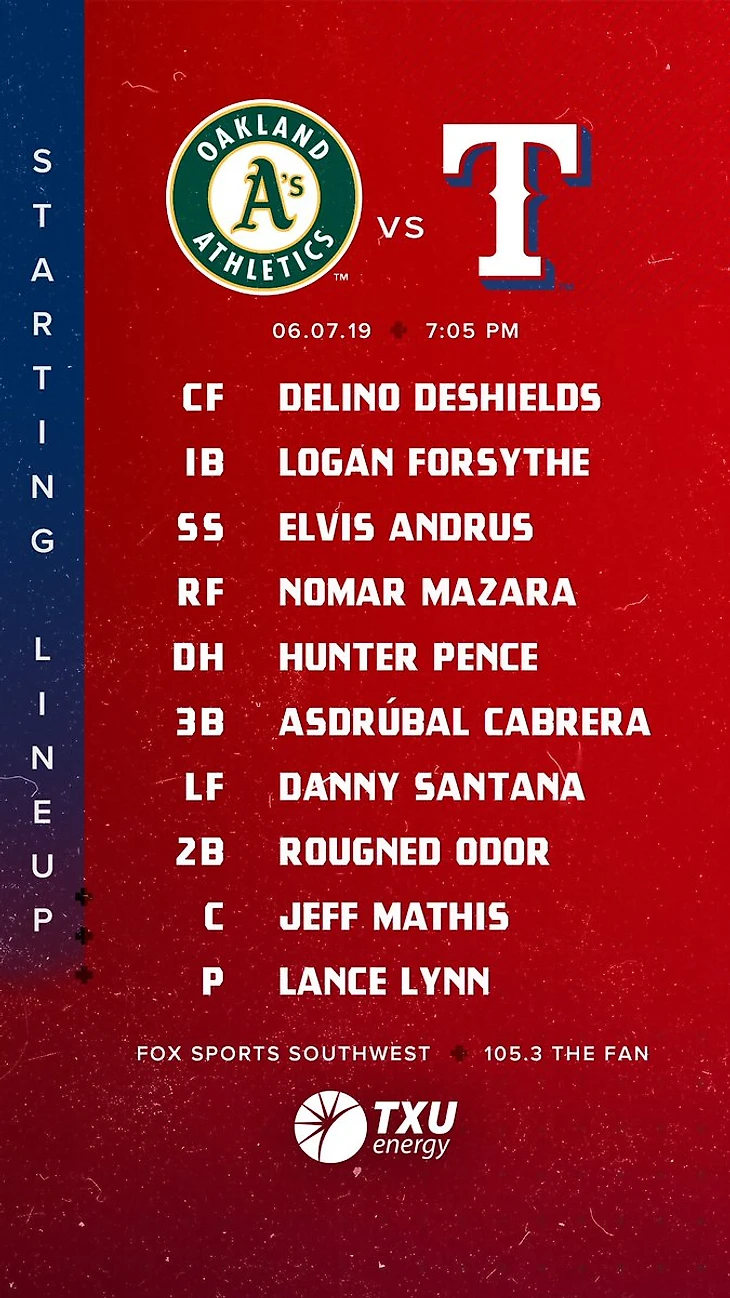 Texas Rangers (L. Lynn) - Oakland Athletics (B. Anderson)