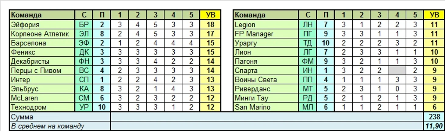 Лучшая команда тура по сумме УВ в целом: Эйфория (18 вариантов)