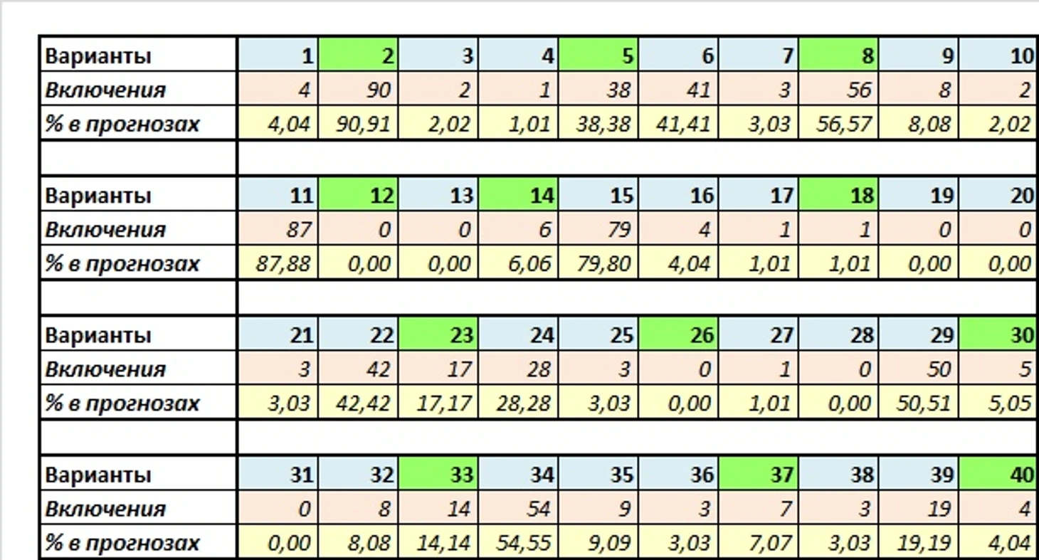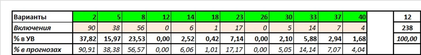 Сыграно вариантов: 12 (2-5-8-12-14-18-23-26-30-33-37-40)