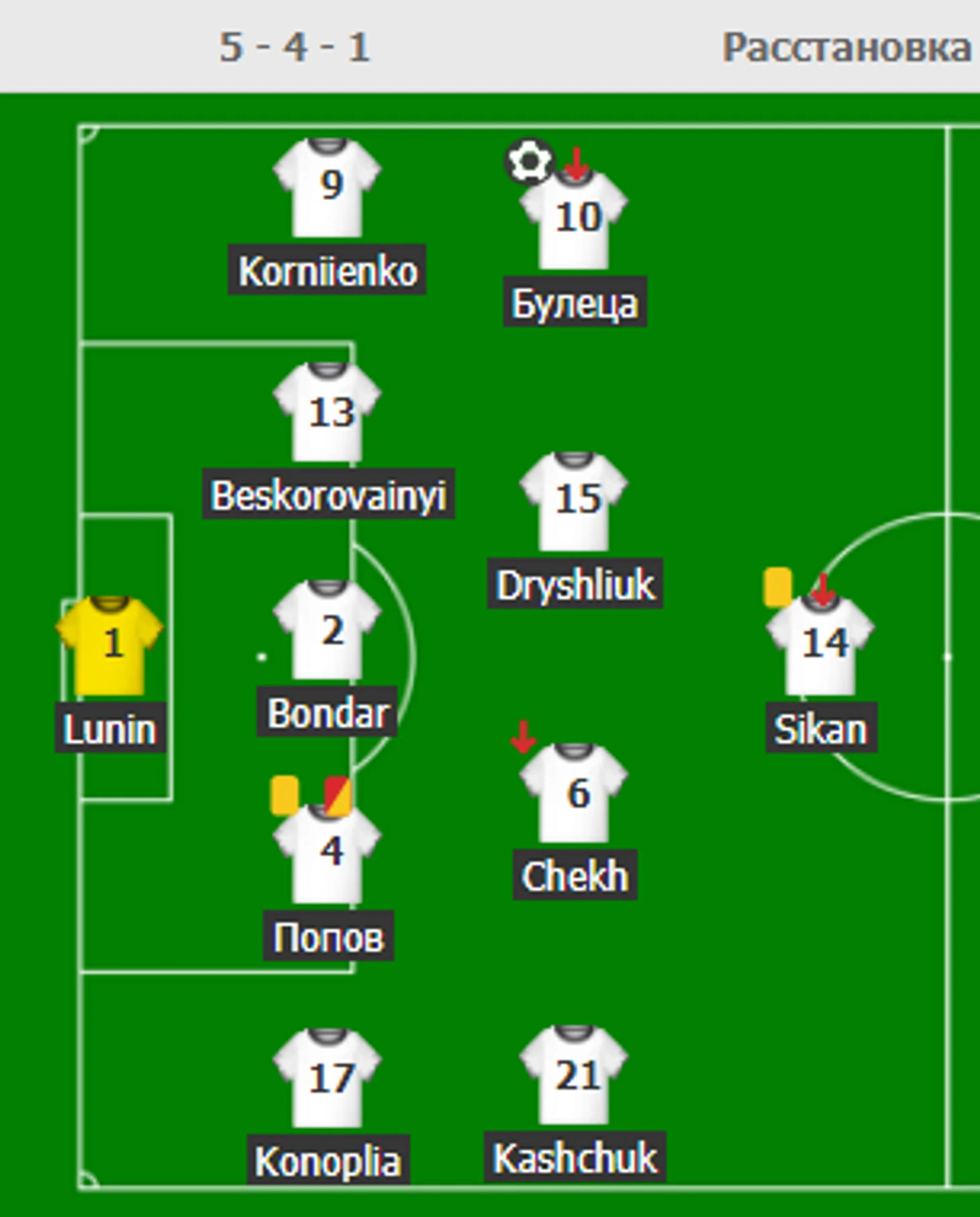 Украина будет играть немного в другую схему 5-4-1, место удаленного Попова займет Сафронов, который уже играл на этом ЧМ, ожидается выход Цитаишвили вместо Кащука, первый отбывал дисквалификацию.
