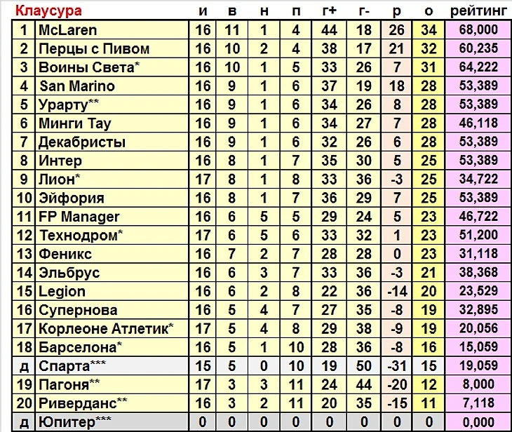 ВНИМАНИЕ! Определён МДП на 18 тур КЧ (Клаусуры-2019):