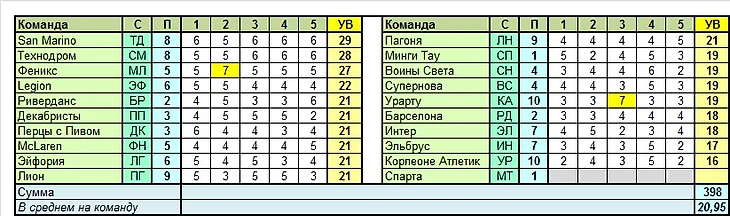 Лучшие игроки тура по УВ в целом: Edward Ilyin (Феникс), Serega K. (Урарту) - по 7 вариантов