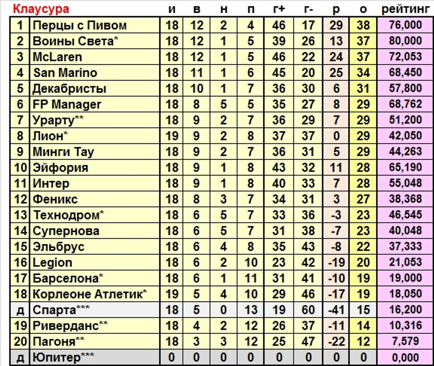 ВНИМАНИЕ! Определен МДП на 20 тур командного чемпионата (Клаусуры-2019) :