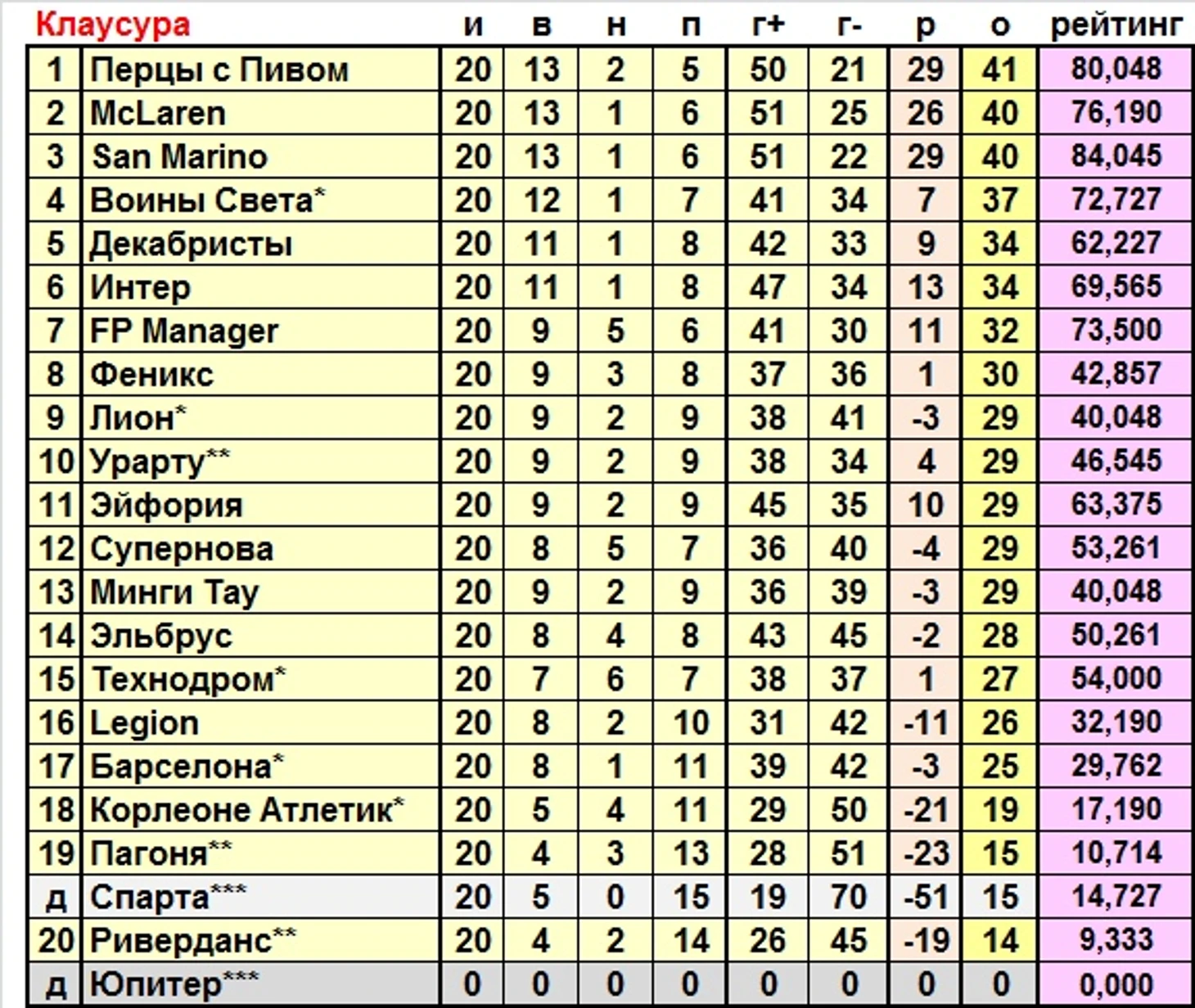 Благодаря победе над конкурентом в очной встрече команда Перцы с Пивом становится чемпионом Клаусуры-2019! Поздравляю! :)