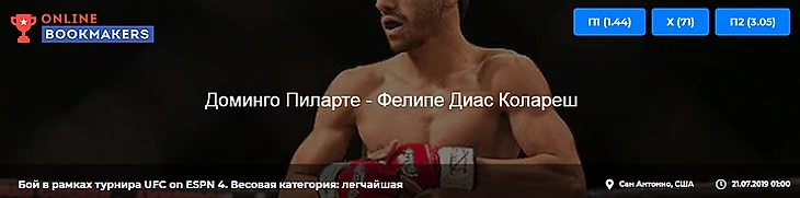 Эксперты Online-Bookmakers.com в этой паре отдают предпочтение Доминго Пиларте. Американец выглядит сильнее в грэпплинге и обладает более качественной ударной подготовкой. Еще одним аргументом в пользу Пиларте является его превосходство в габаритах и дистанции атаки. Больше читайте на online-bookmakers.com