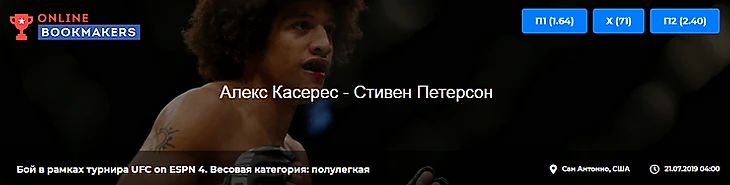 По мнению Online-Bookmakers.com, фаворитом в этом поединке является Алекс Касерес. Он превосходит своего оппонента во всех аспектах боя, обладает более солидным опытом сложных схваток и достаточно давно выступает в UFC. Далее читайте на online-bookmakers.com