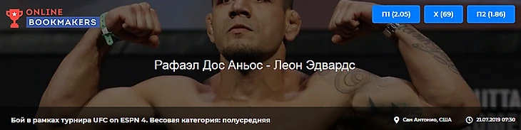 Эксперты Online-Bookmakers.com видят примерно равные шансы на успех у обоих участников этого боя. Эдвардс считается одним из наиболее перспективных бойцов полусреднего веса, который способен на технике переработать любого оппонента. Но Дос Аньосу не привыкать — он не раз побеждал явных фаворитов за счет своего воркрейта, стойкости и воли к победе. Больше читайте на online-bookmakers.com