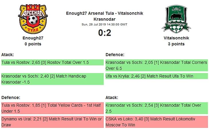 Шанс на единоличное лидерство есть, впрочем, не только у московских грандов – жаждет наконец стать Царем горы и амбициозный Краснодар Витальсончика, который в 1 туре победил в «южном» дерби Ростов Ильи. Соперник, правда непростой – Арсенал Enough27. Однако туляки потратили немало сил и нервов накануне.. И все впустую 0:1 в Лиге Европы с Нефтчи Баку