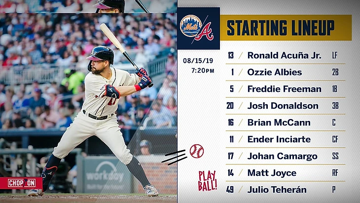 • Atlanta Braves (J. Teheran) - New York Mets (M. Stroman)