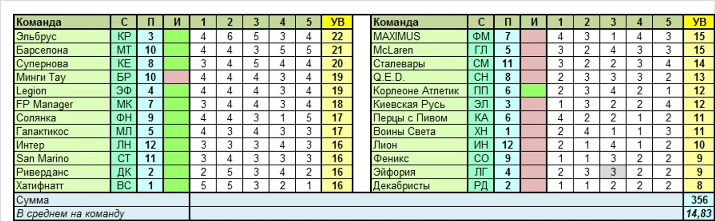 Лучшая команда тура по сумме УВ в целом: Эльбрус (22 варианта)
