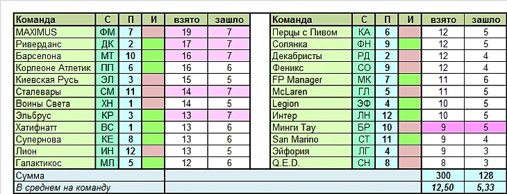 Команда, использовавшая наибольшее число вариантов: MAXIMUS (19 вариантов)