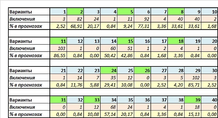 Остались неиспользованными: 5 (13-20-26-31-40)