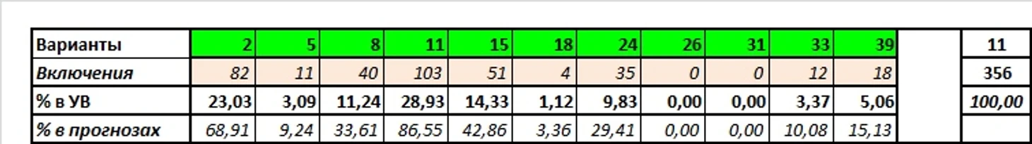 Сумма угаданных вариантов: 356 из 833 (42,74%)