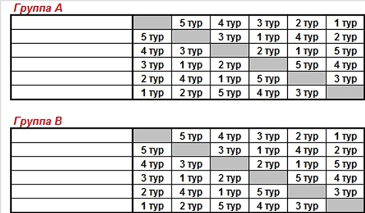 Для группового этапа подготовлены шаблоны шахматок:
