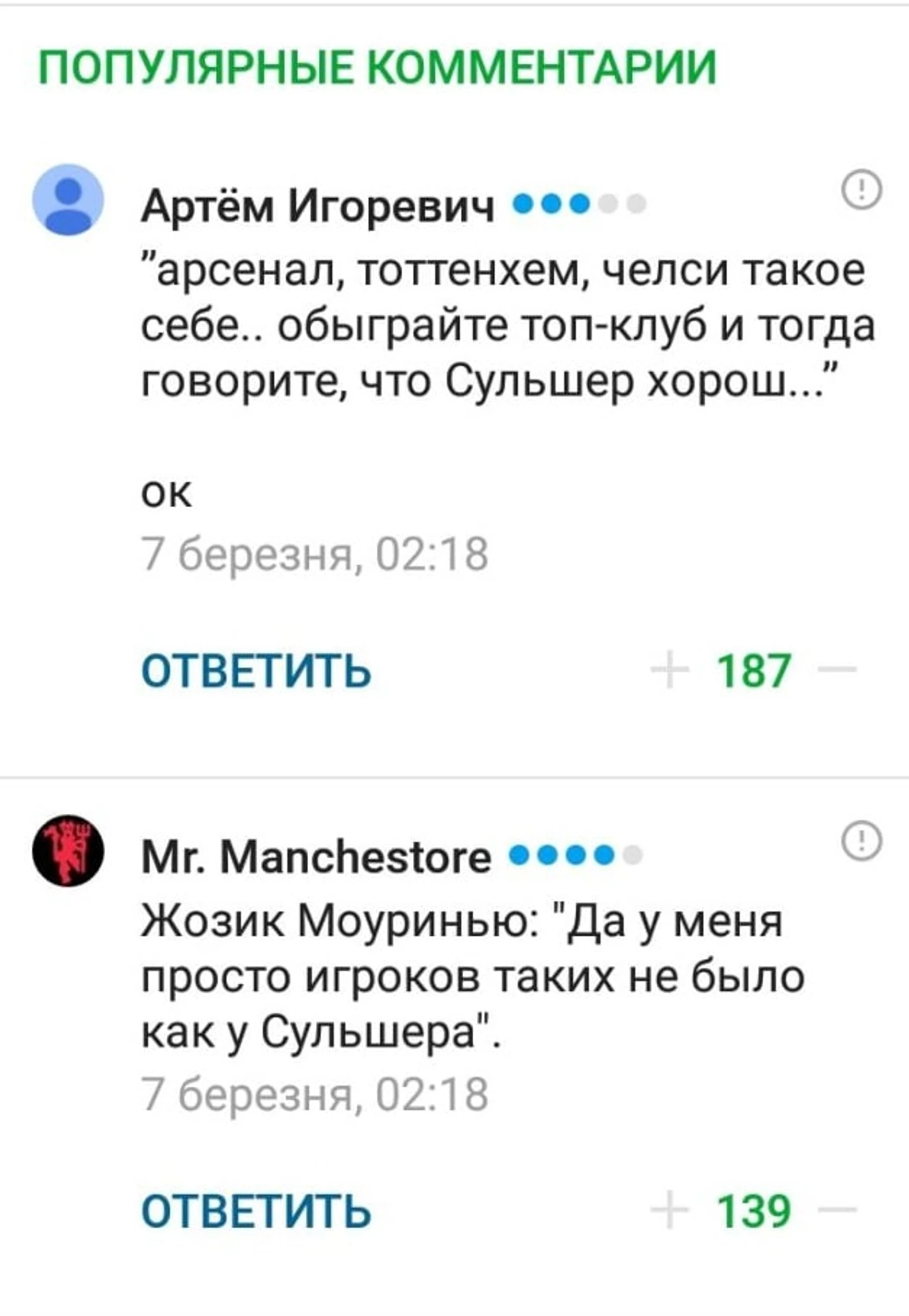 Вспоминаем, что пользователи Sports.ru писали про Сульшера в начале года – когда норвежец возглавил «МЮ», а команда выдала победную серию в АПЛ и прошла «ПСЖ» в Лиге чемпионов.