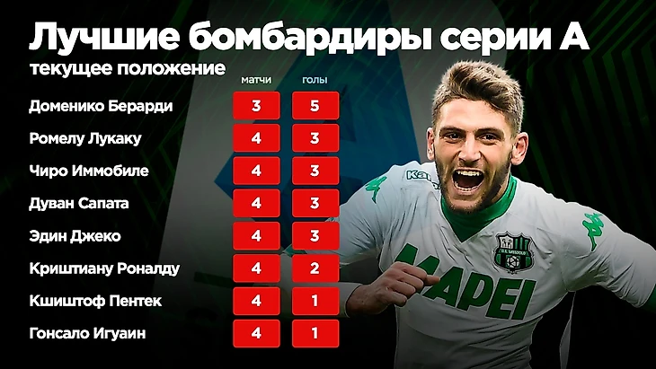А теперь поговорим о человеке, который может обставить всех конкурентов и, словно по конспектам Фабио Квальяреллы, ухватить победу. “Сассуоло” Роберто Де Дзерби играет весело и красиво. Атакующий стиль, привитый им “нероверди”, позволяет сполна раскрыть потенциал главной звезды команды — Доменико Берарди. Ох, сколько же разговоров было о нем в свое время. Те, кто давно следят за Серией А, могут навскидку припомнить пару сотен трансферных историй, связанных с этим игроком. Его огромный потенциал сулил славную карьеру в одном из грандов кальчо: Доменико сватали в “Ювентус”, “Интер”, “Милан” и “Рому”. Он несколько раз оказывался очень близок, но по разным причинам все срывалось.
