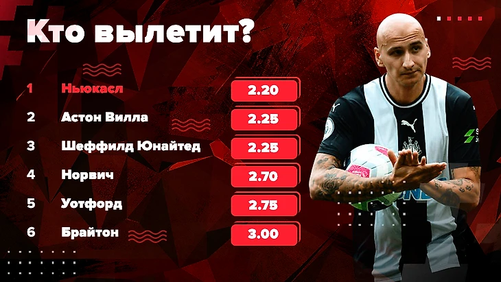 Правда, букмекеры все равно не верят в вылет “волков” (на это предлагают поставить с коэффициентом 11). Если в самом начале сезона главными претендентами на вылет были “Шеффилд” и “Норвич”, то сейчас у них абсолютно равные шансы с “Ньюкаслом”, “Астон Виллой”, “Уотфордом” и “Брайтоном”.