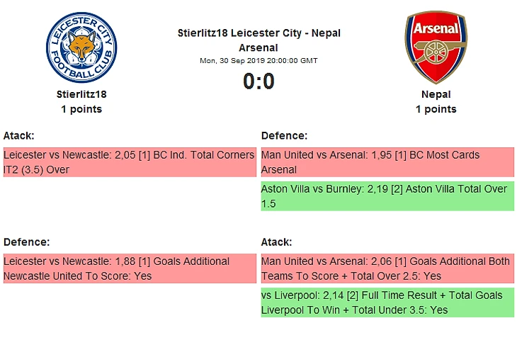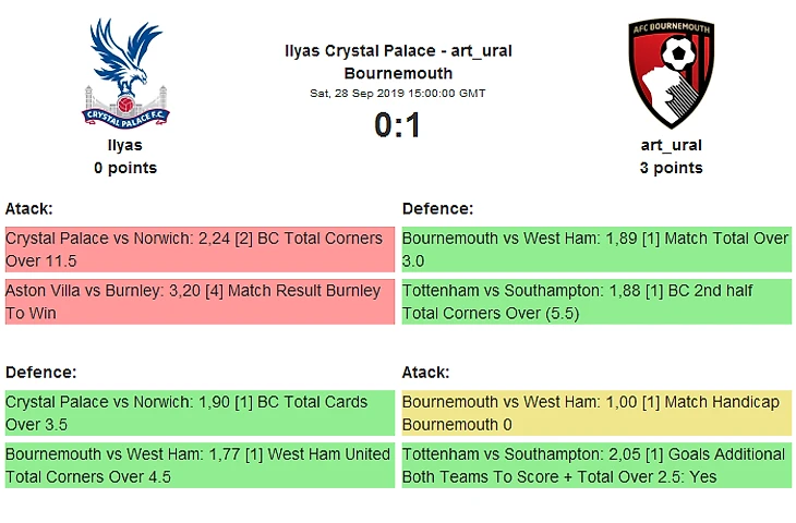 В двух оставшихся парах соседи по турнирной таблице Лестер Stierlitz18 и Арсенал Непала, мой Борнмут и Кристалл Пэллас Ильяса выяснят, кто из них сможет бросить вызов лидирующей тройке. И по балансу, и по уверенной игре в атаке Борнмут и Арсенал выглядят предпочтительнее своих соперников, но в пользу Ильяса и Stierlitz18 uоворит их лучшая защита по сравнению с соперниками/