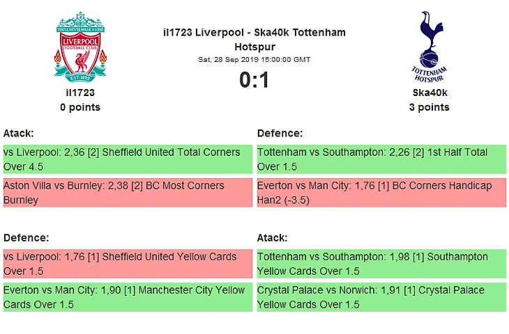 Чемпионский Тотенхэм Скачка непривычно много ошибается, но при этом класс дает о себе знать – очки стабильно набираются.. Его соперник Ливерпуль Ильяса идет на последнем месте, но по игре явно заслуживает большего.. Опять засуха и ничейный синдром.. Впрочем в РПЛ он сумел организовать финишный рывок – возможно и на этот раз он сможет ударно провести концовку ?