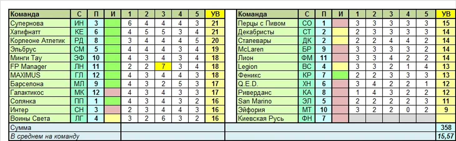 Представляю рейтинг сезона после 3 тура КЧ (за 6 игровых дней):