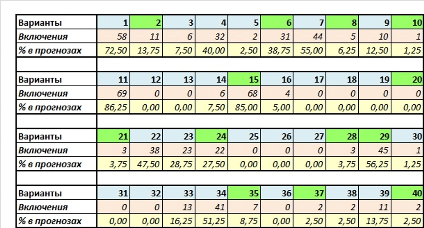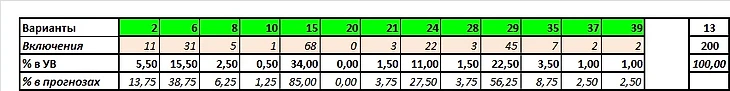 Сыграно вариантов: 13 (2-6-8-10-15-20-21-24-28-29-35-37-40)
