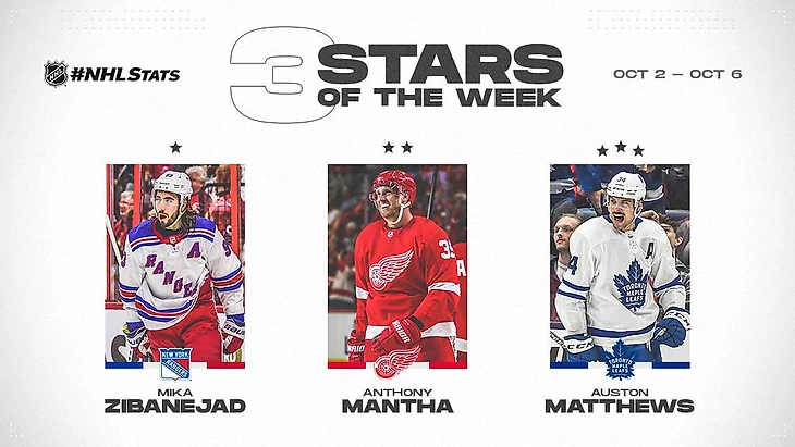 Национальная Хоккейная Лига подвела итоги первой недели регулярного чемпионата и определила, так называемые, "три звезды", которыми стали:
