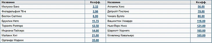 "Бруклин" хорошо усилился в межсезонье, но пока неясно когда и в какой форме вернётся Дюрант. Конечно, Бостонская молодёжь может проявить все свои лучшие качества, но я не вижу в этой команды лидера, который сможет вести команду за собой. Очень многое ждали от "Бакс" в прошлом сезоне, что именно они будут играть с "ГСВ", но в финале конференции команда также уступила будущим чемпионам. Непонятно, сможет ли МВП Яннис Антетокунмпо показывать столь зрелищный баскетбол и вести команду вперёд.