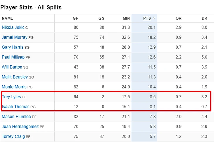 Денвер летом ничего не делал, кроме как заменил Лайлза на Гранта из Оклахомы, а это еще один бонус к быстрому баскетболу, плюс Грант попадает трешки под 40% хоть и немного бросает. Понемногу будет задействован звездный новичок Портер который пропустил дебютный сезон, и сегодня от него много минут ждать не стоит, его будут подводить очень аккуратно, в остальном этот тот же Денвер что и ранее, один в один. Только! очень важный нюанс, Милсеп постарел еще на год, он и так уже слабо тянет, а теперь на годик младше, хотя по честному на пол года)).