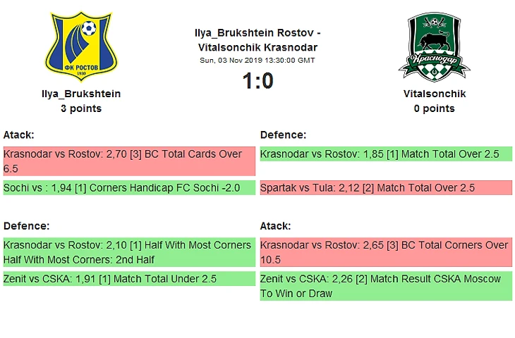 Редкий случай — наш календарь совпал с реальным футбольным. Будет интересно! Илья, судя по цифрам, явно в лучшей форме, 2-ой баланс турнира, но ставить на 4 поражение подряд Краснодара — я бы не решился..