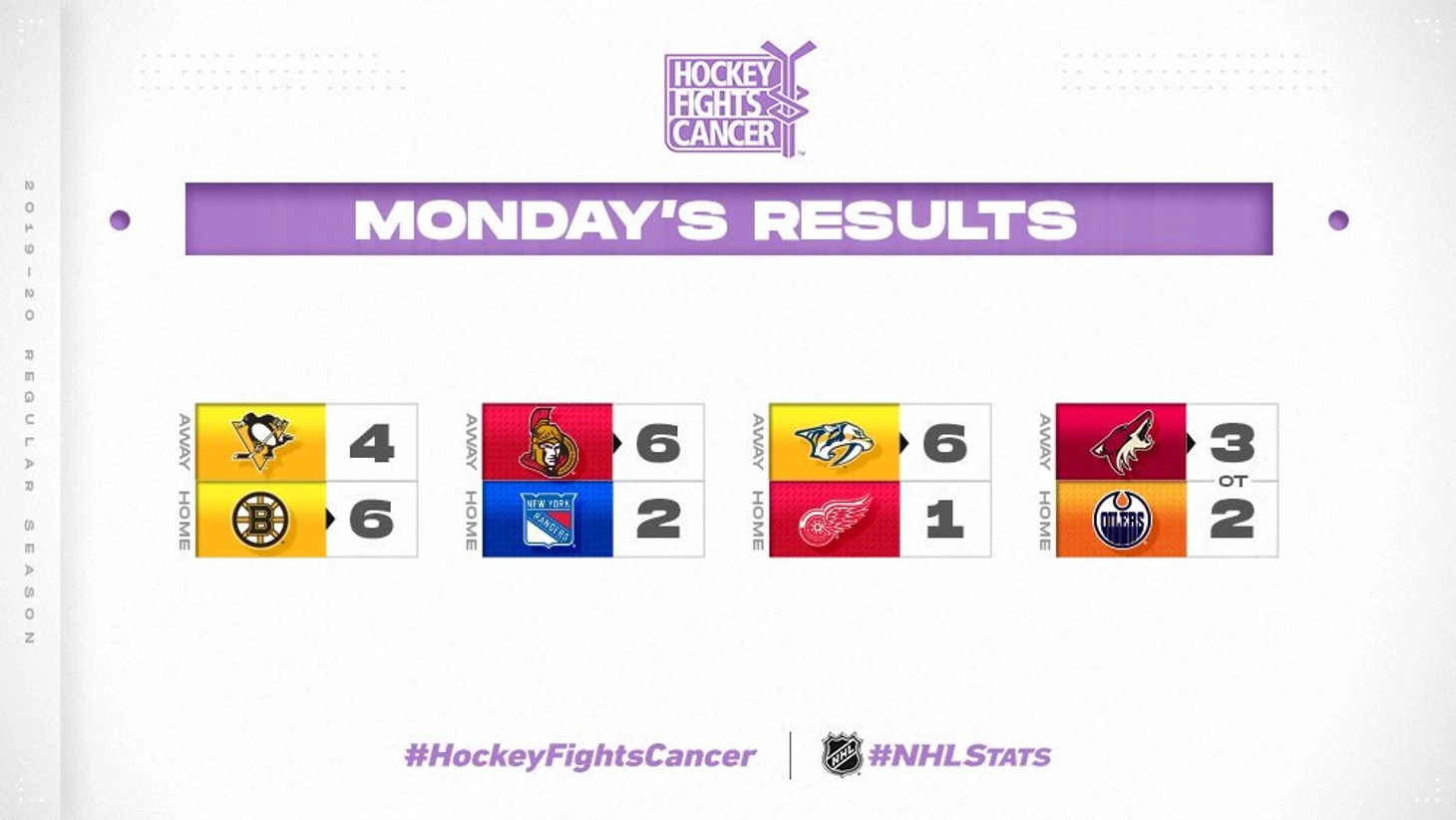 Из оставшихся матчей игрового дня отметить хочу 6-ю подряд победу Boston Bruins, которые вчера обыграли на домашней арене TD Garden хоккеистов Pittsburgh Penguins (6:4).