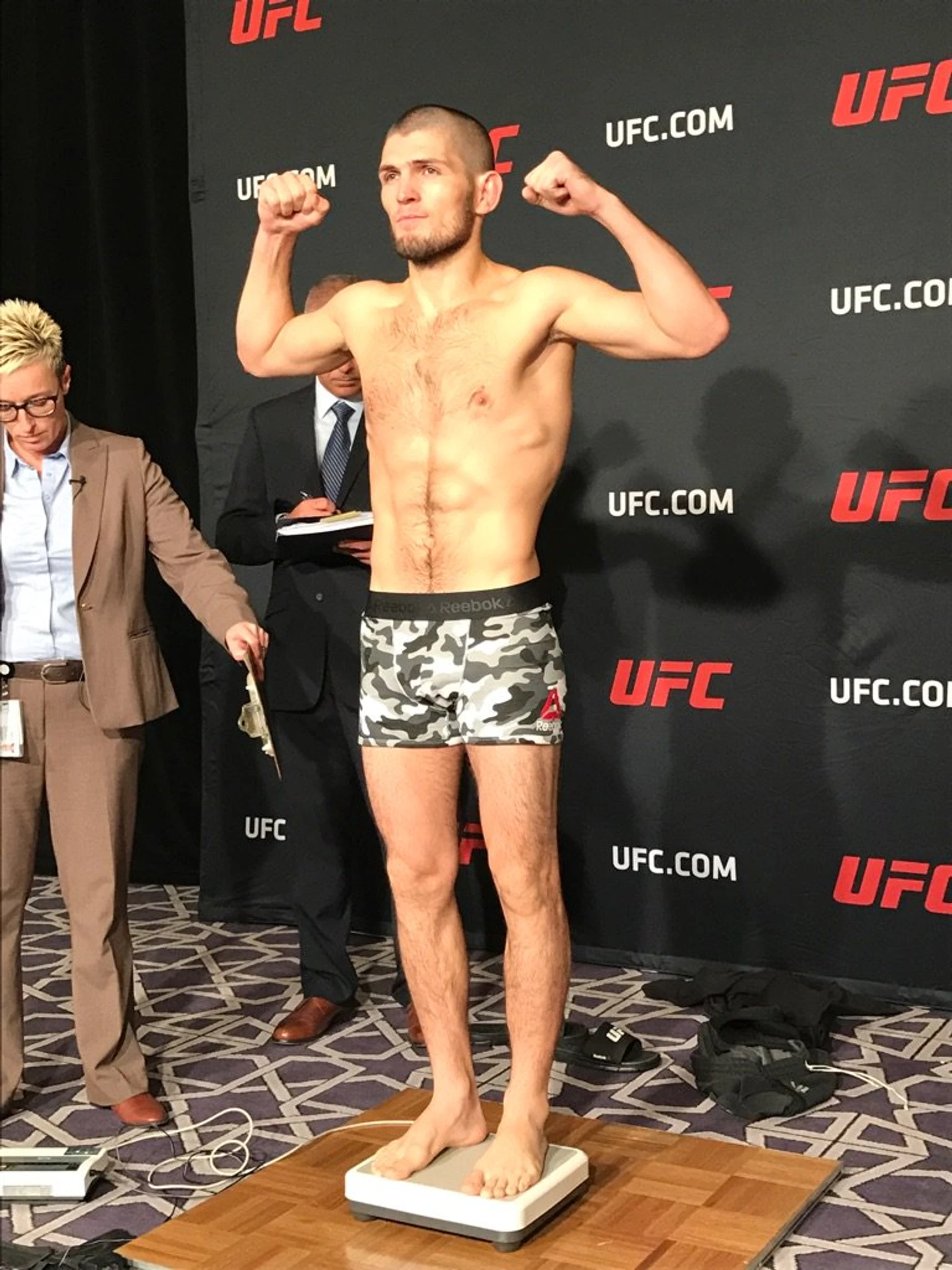 Тогда Хабиб всё-таки смог показать необходимые цифры на взвешивании, однако его организм подвергся критическому обезвоживанию. В этот же вечер атлетическая комиссия Невады сняла его с боя. Чуть позже Нурмагомедов почувствовал острую боль в почках и печени и был госпитализирован.