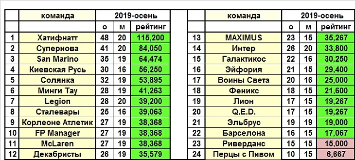 Суперлига осень-2019.