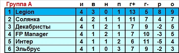 * San Marino, Супернова, McLaren обеспечили себе досрочно выход из группы, СМ и МЛ претендуют на 1-ое место (в 5-ом туре очная встреча); Супернова 1-ое место занять не сможет из-за разницы голов по личным встречам с СМ и МЛ