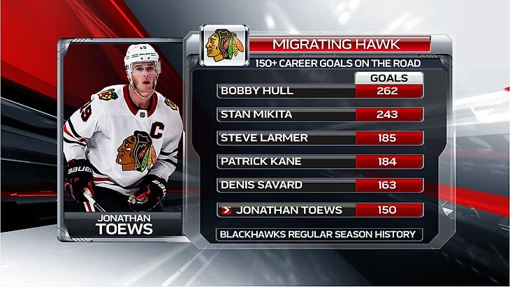 Капитан Chicago Blackhawks Джонатан Тэйвз, отметившийся шайбой в овертайме выездного матче vs. Boston Bruins (3:4 ОТ), вписал свое имя в список тех хоккеистов франшизы, которым удавалось достичь показателя в 150+ заброшенных выездных шайб;