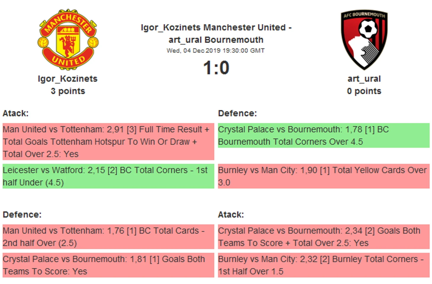 Чемпионский Борнмут едет в Манчестер. Хозяева явно раздосадованы неудачей в последнем матче, где все у них «валилось из ног».. Смогут собраться?    Ну а чемпион упустил победу «на флажке»..