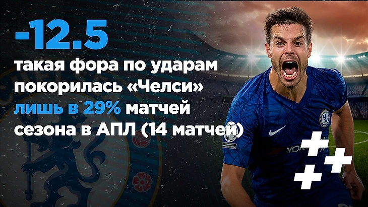 Очевидно, что именно хозяева нанесут в этой встрече большее количество ударов, но смогут ли они пробить фору −12,5, на которую мы ориентируемся? Подобный результат покорялся "Челси" в этом сезоне лишь в 29% случаев, а вот "Астон Вилла" проиграла с таким гандикапом только три игры из 14-ти. Это было в матчах против "Ливерпуля", "Манчестер Сити" и "Тоттенхэма".