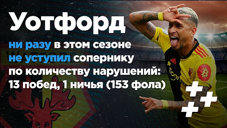 Отталкиваться будем от другого. Предматчевые расклады сигнализируют о том, что "Уотфорд" большую часть встречи будет держать оборону. Это неизбежно приведет к фолам, а в этом компоненте они "хороши". 153 нарушения в матчах этого сезона делают клуб с востока Англии одним из самых "грязных" в лиге. Более того, последняя команда чемпионата решила никому не проигрывать в этом компоненте: 13 побед и лишь одна ничья в игре с "Эвертоном".