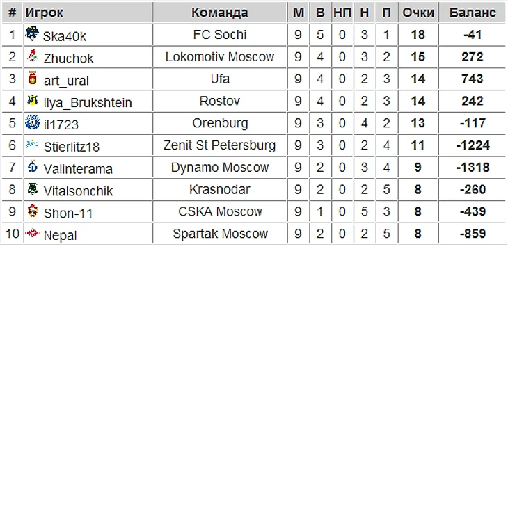 Турнир по ставкам на РПЛ. Номер седьмой. 9 тур –Финал четырех!
