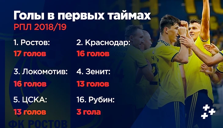 У Валерия Карпина команды обычно очень круто начинают, и первые 20-30 минут проводят очень заряженно. Возможно, это связано с мотивационными скиллами коуча, а, может быть, с тактическим расчетом. Забили сразу, а потом можно ловить соперника на любимых контратаках. У “Ростова” в этом сезоне очень классная статистика. Команда забила сразу 17 голов в первой половине встречи. Второе-третье место по этому показателю делят “Локомотив” и “Краснодар” (по 16 мячей). “Спартак” же, напротив, отвратительно проводит стартовые 45 минут, и на его счету только 6 голов. Столько же у “Оренбурга”, меньше у “Урала” (5) и “Рубина” (3).
