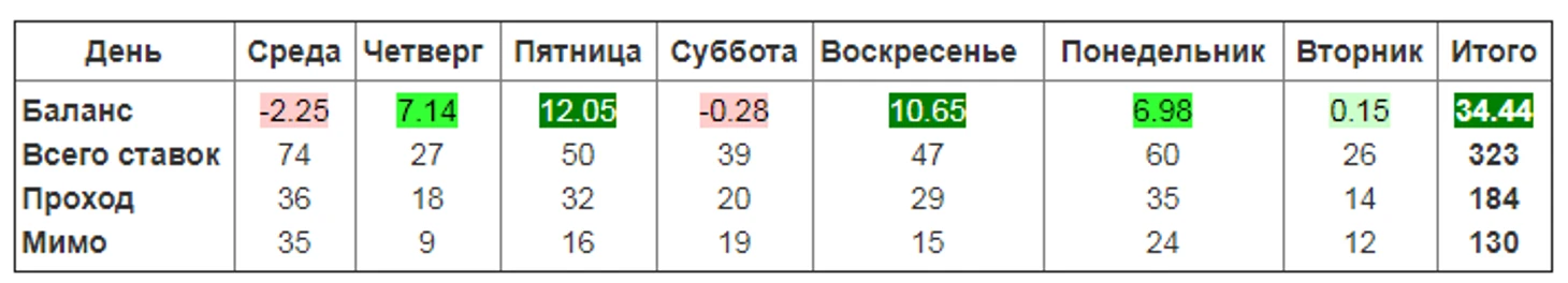 Наконец, я решил еще одну экспериментальную подписку открыть на прогнозы по игрокам, которые тоже довольно неплохо идут, за прошлую неделю удалось вытащить +8.5 флэтов (см. ниже). Я не ожидаю больше 3-5 прогнозов в день по ней, иногда даже и нет стоящих вариантов, в общем если вы не фанат большого количества ставок в день, то может эта рассылка вам подойдет лучше. Стоимость такой подписки 200 рублей в неделю, прогнозы будут публиковаться в закрытом канале телеграм.