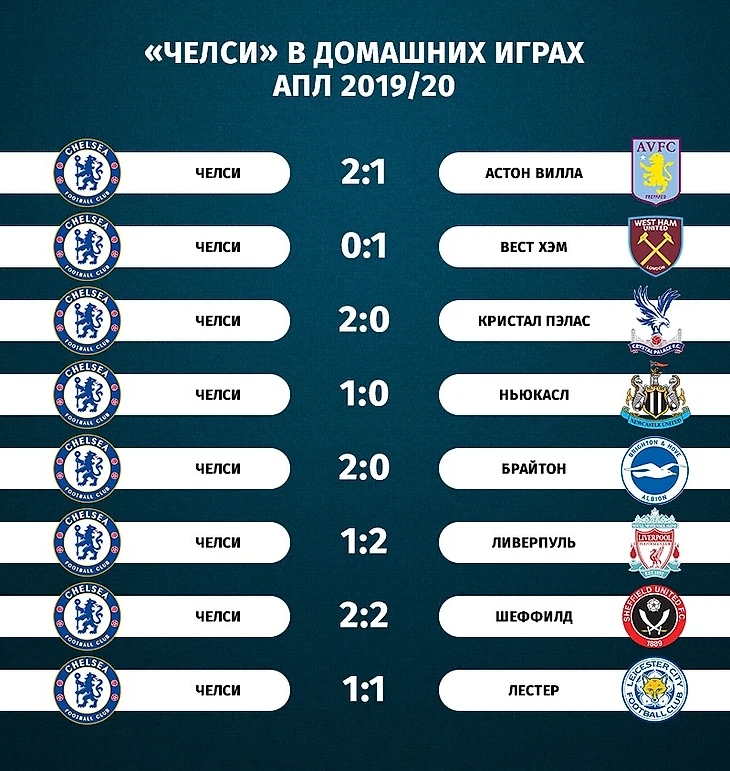 «Челси», естественно, выглядит по уверенней, но тоже находится не в лучших кондициях. Да, победили «Лилль», вышли в плей-офф, но даже в этой игре, против немотивированного в целом соперника, умудрились пропустить (от Реми, кстати). Но поправился Рюдигер, Лэмпс сразу же поставил его в состав, дав понять, что немец будет основным центрбэком «Челси». «Аристократы» проиграли три из четырех своих последних игр в АПЛ. Интересно, игра против «Эвертона» – это пик спада? Давайте взглянем на таблицу домашних результатов синих в этом розыгрыше АПЛ: