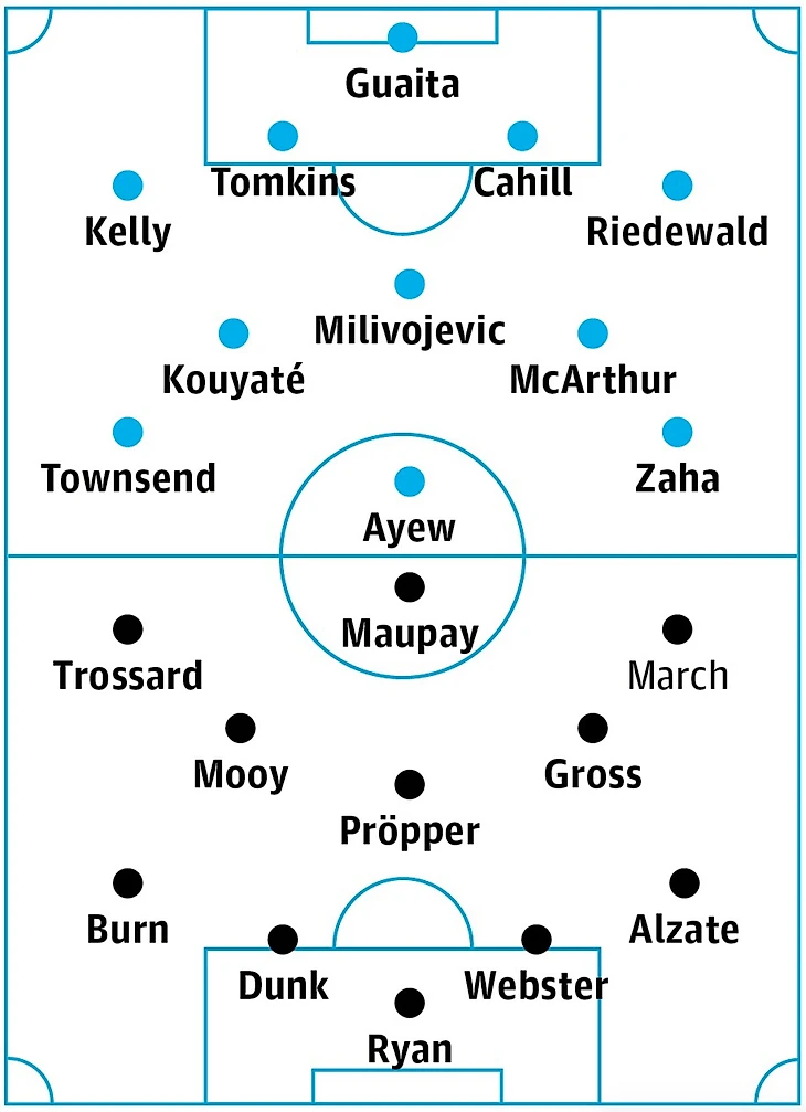 Ориентировочные составы на матч «Кристал Пэлас» - «Брайтон» по версии The Guardian: