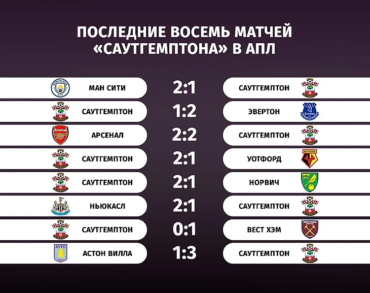 Каких-то значимых потерь у команд нет, поэтому на поле ожидаются все сильнейшие. Шанс на гол у «Святых» есть, они шестые по показателю xG в лиге. Не забили всего в трёх матчах АПЛ, хотя идут на семнадцатом месте.