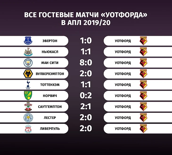 «Уотфорд» в гостях играет очень плотно и мало пропускает (исключение – матч с «Сити»). Посмотрите на статистику выездных встреч:
