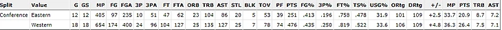 В состав Хьюстона вернулся Эрик Гордон и часть бросков он должен откусить именно у Расселла, к тому же Филадельфия отлично обороняется в краске, там где, Уэстбрук наиболее эффективен, ещё один интересный момент, Уэстбрук против команд с Восточной конференции менее результативен, чем против Запада 20.9 и 26.4 очков соответственно