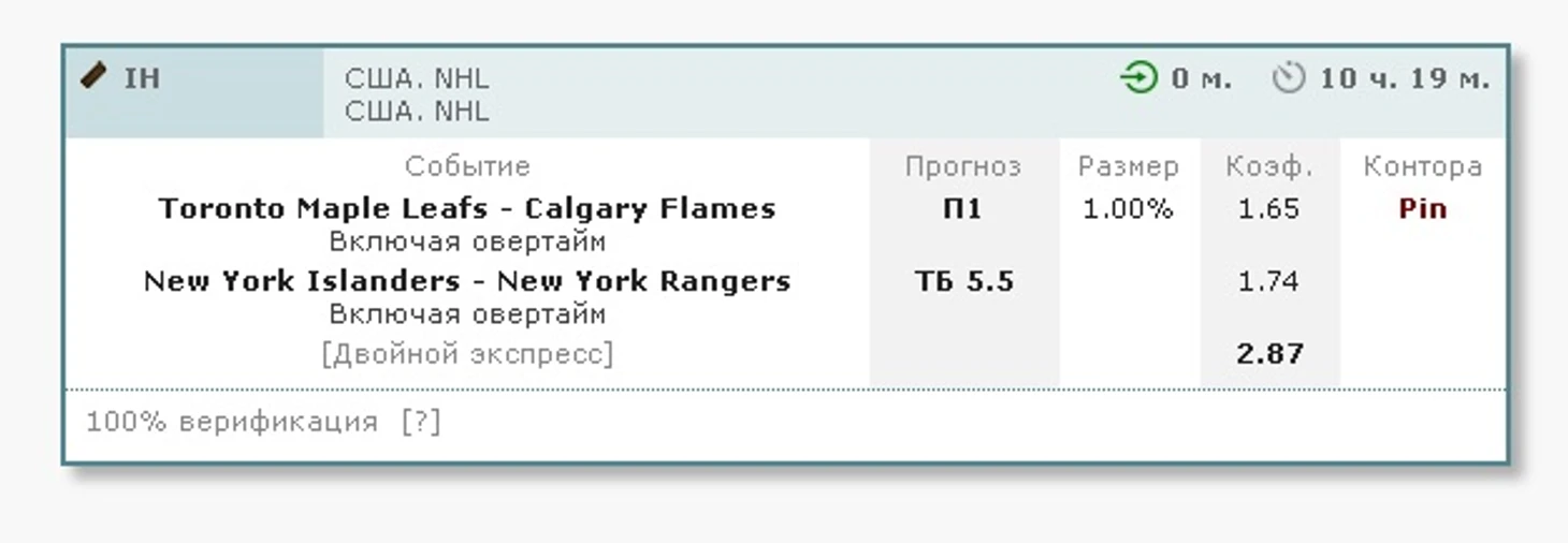 Экспресс на регулярный чемпионат НХЛ