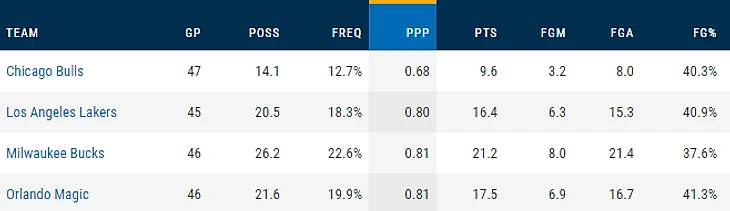 За сорок пять сыгранных матчей в этом сезоне Гарланд только в тринадцати из них пробивал тотал в 14.5 очков, и даже в таком случае ставка выглядит достаточно перспективно, Чикаго на данный момент входит в топ-10 лучших оборон Лиги, конечно в атаке совсем все плохо и очень многое зависит от индивидуальных действий Зака Лавина. Оборона Чикаго действует достаточно интересным образом, стараясь максимально плотно прижимать боллхендлера на пик-н-роллах, это чуть ли не главная задача, и игрокам очень сложно атаковать после заслона, поэтому и Чикаго меньше других даёт набирать соперникам очки после P-n- R пропуская вчего 9.6 ! очков в среднем за матч, у Гарланда 42.7 % атак это пик-н-ролл, я думаю мой выбор крайне логичен