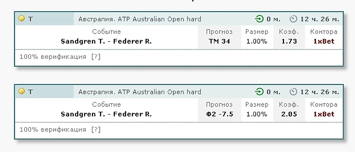28-ми летний Теннис Сандгрен зашел слишком далеко, только из-за этого уже прямо сейчас можно похлопать американцу. Игрок не имеет статус звезды, но даже это не мешает Теннису переигрывать одного серьезного оппонента за другим. Главный вопрос заключается лишь в том, продолжится ли прекрасная сказка Тенниса на этом большом шлеме? Я полагаю, что нет.. время уже пришло, тем более в соперниках будет играть ни какой-то Фабио Фоньини, а сам Роджер Федерер. Я считаю, что третья ракетка мира обыграет своего конкурента еще до выхода до корта, ведь 28-ми летний американец все-таки находится не в такой прекрасной форме что-бы преподносить очередную сенсацию на турнире. В прошлой игре Федерер доказал, что не смотря на свой возраст, что он еще способен показывать свой теннис.. Да, Роджер пару дней назад проиграл сет Мартону Фучовичу, но как швейцарец отыграл прекрасно следующие три сета, не дав своему оппоненту даже прийти в себя от происходящего. Сказка американца по моим предположениям этим утром прервется, и закончится она должна уверенной победой третьей ракетки мира Роджера Федерера.