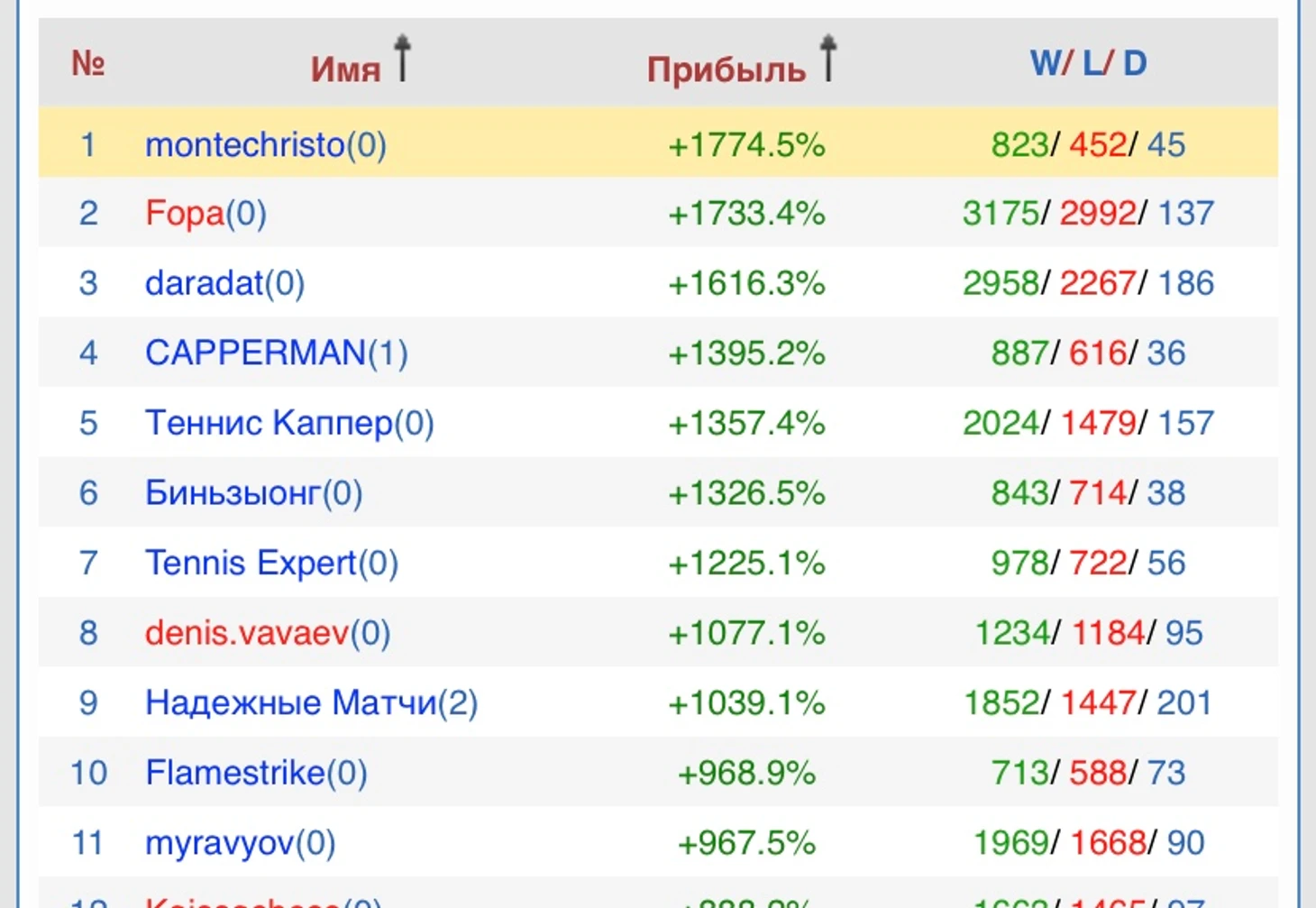Николай Труш(«Монтекристо»)- один из самых известных аналитиков сайта «ВПРОГНОЗЕ». На данный момент, «Монт» идёт на 1 месте среди ВСЕХ пользователей этого сайта. За всё время ему удалось раскрутить виртуальный банк до 86 МИЛЛИОНОВ. Сейчас у Николая есть свой телеграмм канал, в котором собралось почти 16 000 подписчиков. По его словам, он зарабатывает только засчёт ставок и канала.